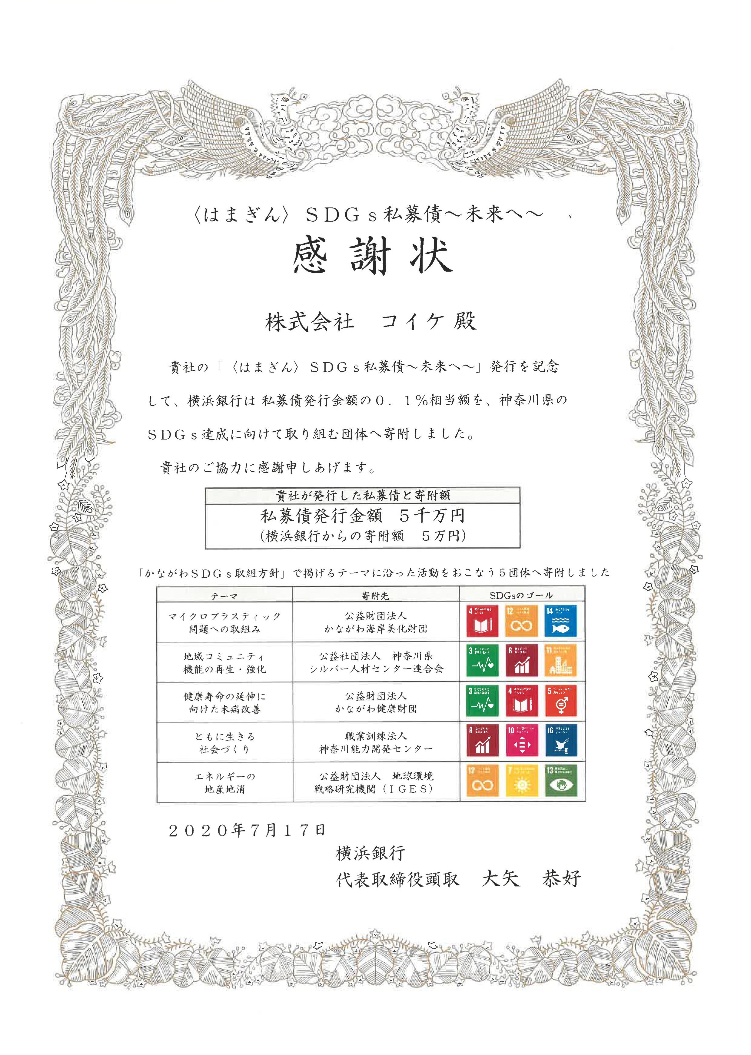 2020年2月に横浜銀行で発行したSDGs無担保社債