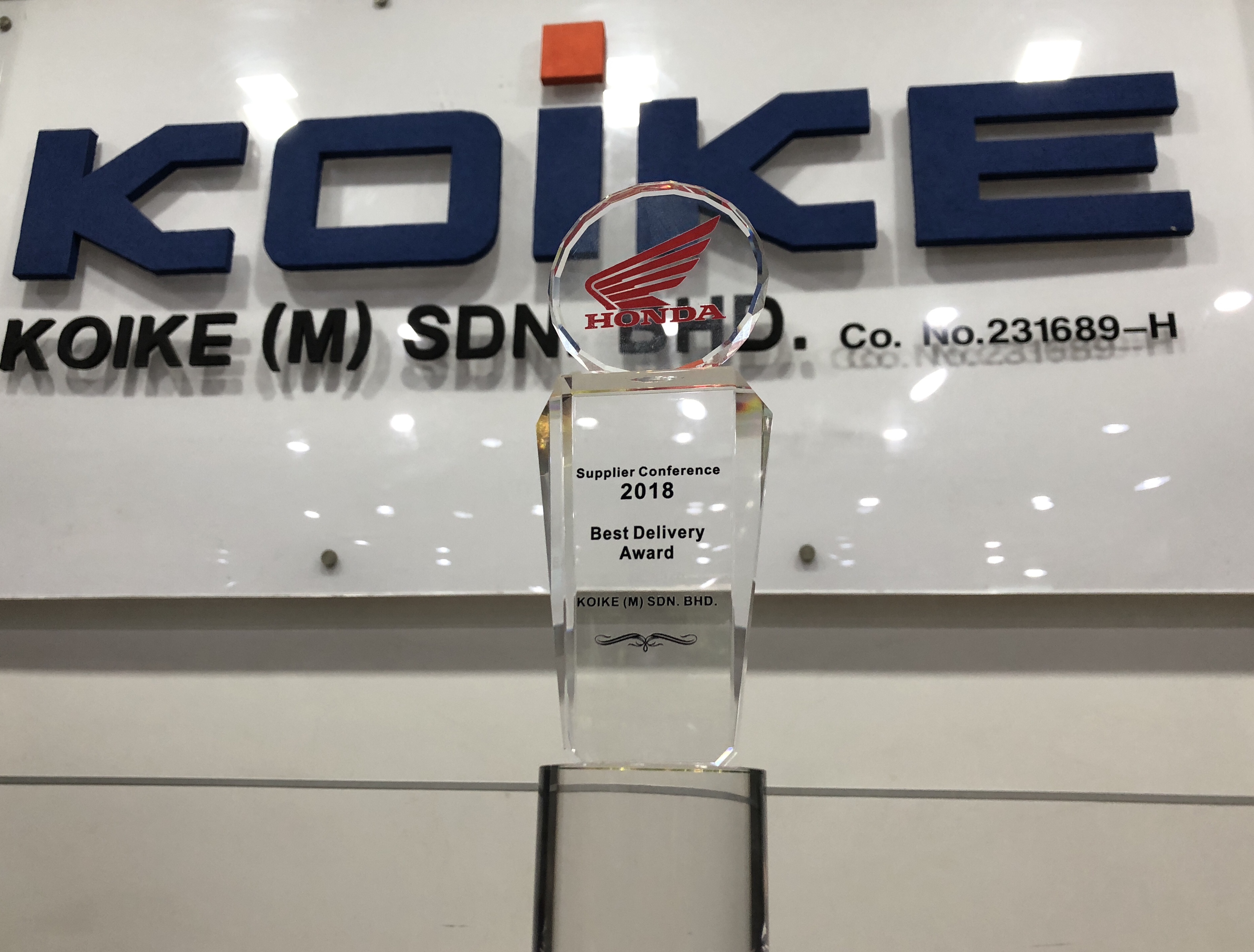 2019/03/08 お知らせ KOIKE(M)が、2018 Honda Best Delivery Awardを受賞しました。 KOIKE(M)が、昨年のベストサポート賞に続き、ベストデリバリー賞を受賞しました。 今年度のBest Delivery Awardトロフィー 昨年のBest Supportive Awardトロフィー